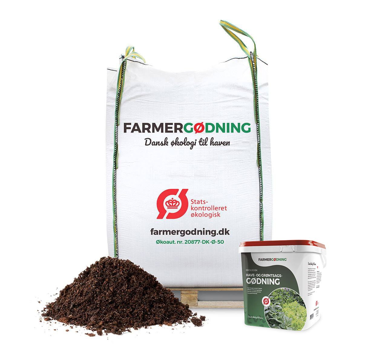 Økologisk Højbedsmuld fra Farmergødning leveret i bigbag. Økologisk Højbedsmuld fra Farmergødning er fremstillet af komposterede planter samt gødning. Mulden er klar til at plante i, har en god struktur, og når højbedet er etableret skal der kun gødes en