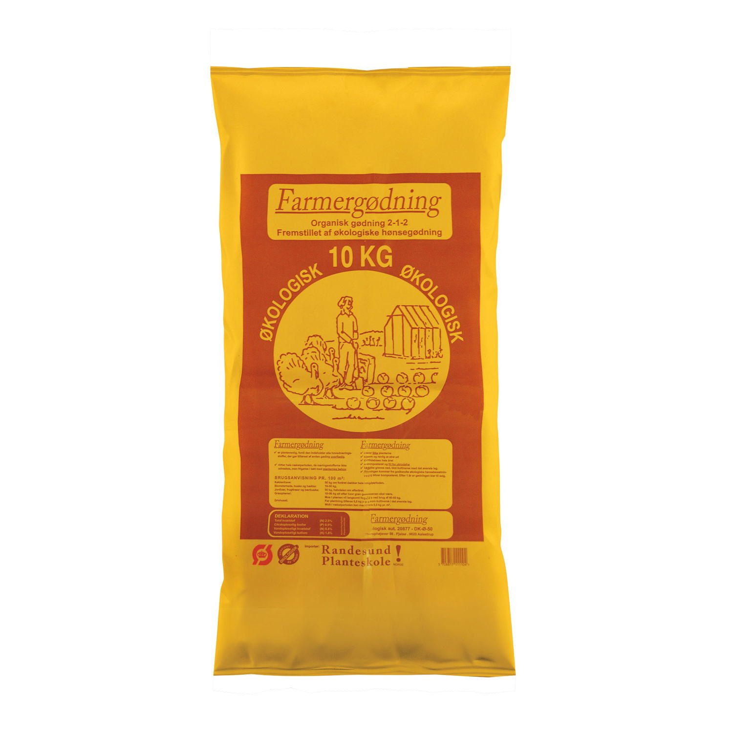 Økologisk, komposteret og granuleret hønsegødning 2-1-2. Farmergødnings økologiske hønsegødning er en organisk havegødning fremstillet af gødning fra godkendte økologiske, danske hønsebesætninger. Efter 1 års kompostering er gødningen klar til salg. Hønse