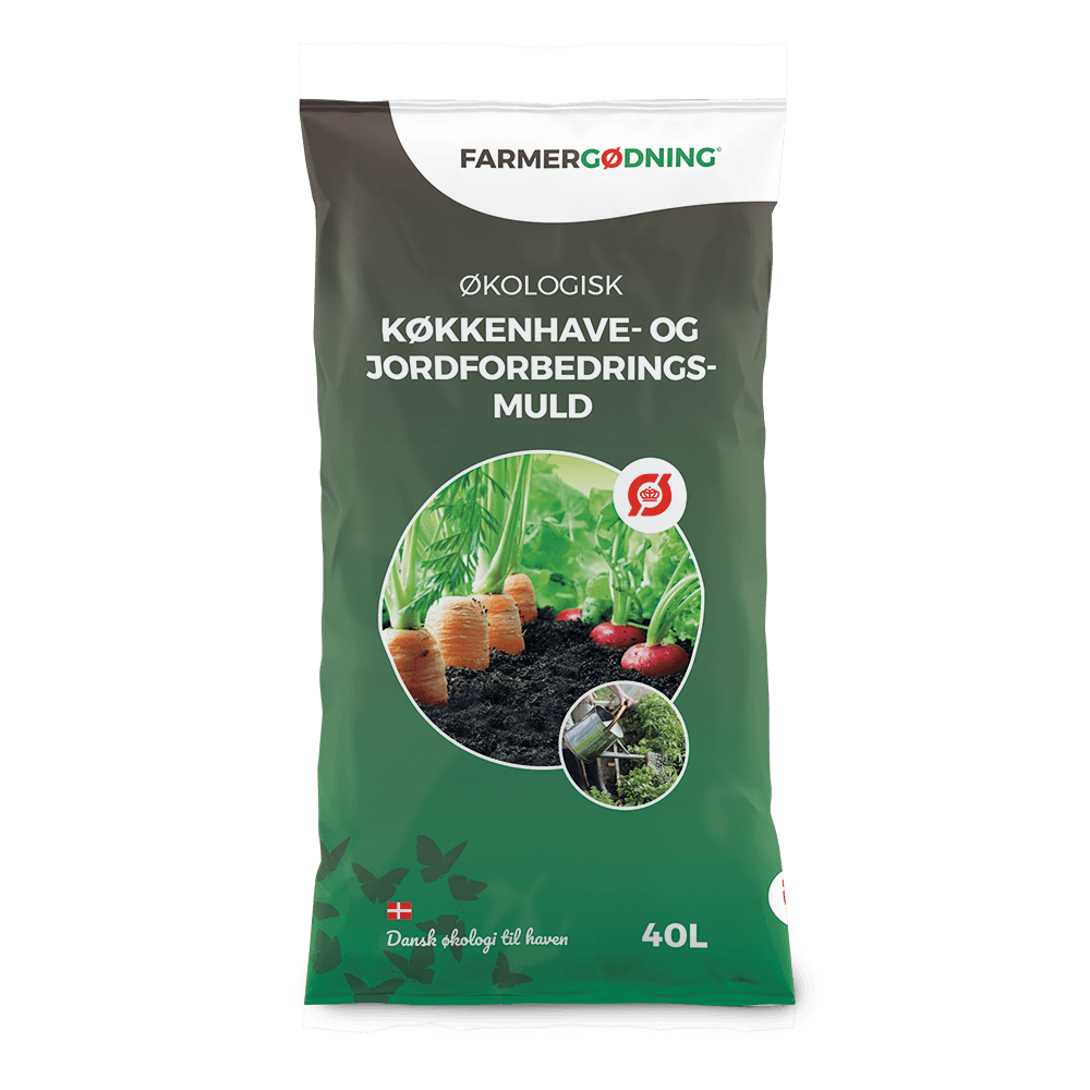 Økologisk Køkkenhave- og jordforbedringsmuld fra Farmergødning er 3 års kompost, der udelukkende indeholder økologiske ingredienser. Køkkenhave- og jordforbedringsmuld er velegnet til alle typer planter og til brug køkkenhaven, højbede og i plantekasser.