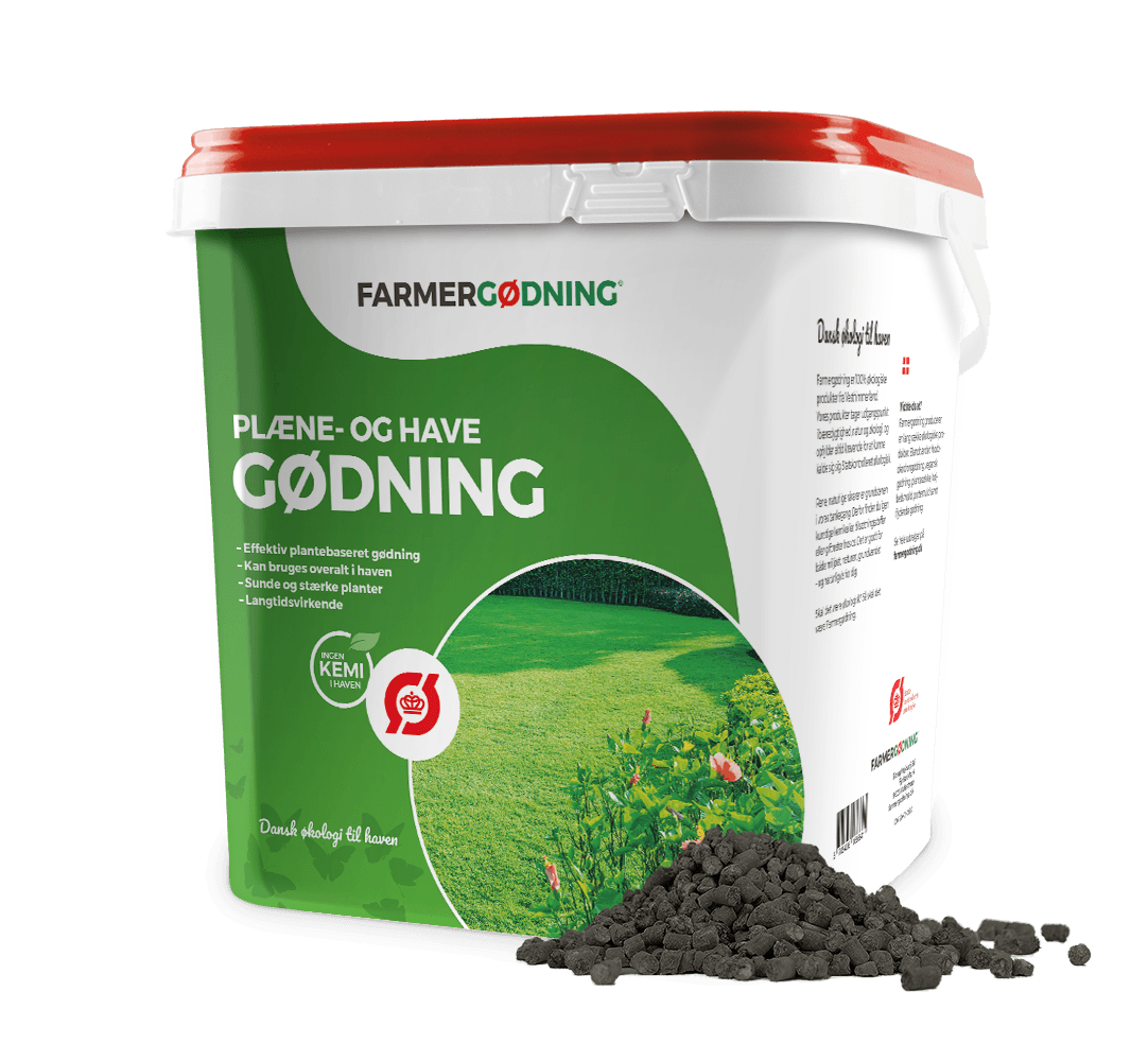 Farmergødning Økologisk plæne- og havegødning i 5 liters spand. Økologisk plæne- og havegødning består af komposteret økologisk hønsegødning, der forbedrer jordens mikrobiologi og øger jordens humusindhold. Gødningen kan bruges på græsplænen, i køkkenhave