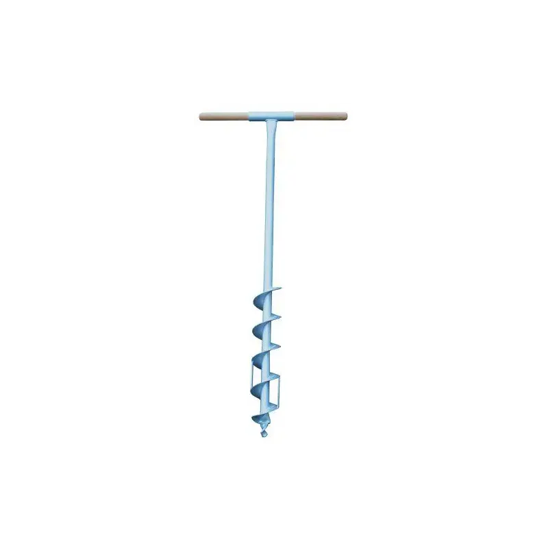 Pælebor M/snegl & Rodskær 9 Cm – 304-925Pælebor med ekstra lang snegl. Med 4,5 vindinger og med 2 rodskær. Sølvfarvet pulverlakeret jern med træhåndtag. Totalhøjde 110 cm. Max. huldybde 80 cm.