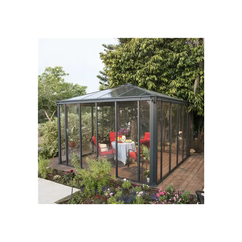 Palram Ledro 3600 lukket havepavillon, antracitgrå Ledro 3600 lukket havepavillon fra PALRAM giver elegance til din have og kan bruges hele året. Den er fremstillet i grå en pulverlakering med et bronze glasur farvet tagkonstruktion. Den er rustbestandig