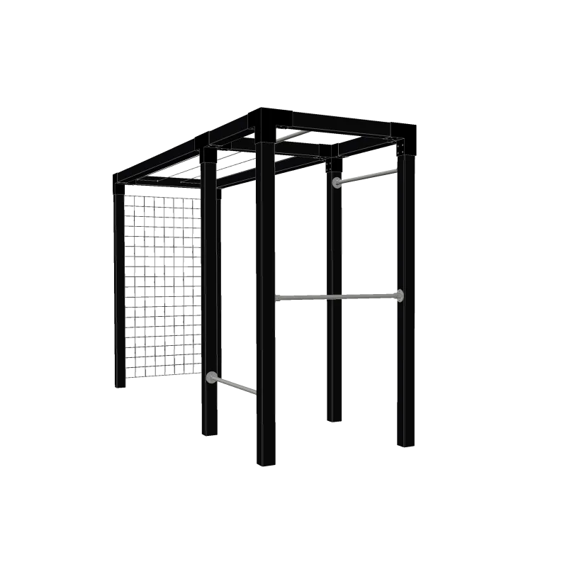 Plus Daylife Model 2 – 369 x108 x208 cm – 179081-15 Specifikationer: Certificering: FSC MIX 70% Bredde: 108 cm Højde: 208 cm Længde: 369 cm Farve: Sort RAL 9005 Materiale: Fyr Overflade: Trykimprægneret NTR Kl. A og grundmalet Design: PLUS A/S V