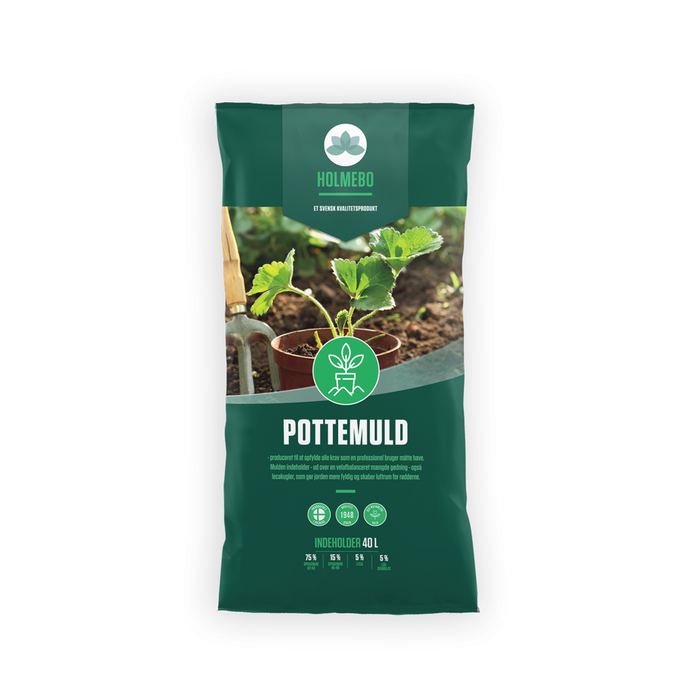 Pottemuld fra Holmebo er en rigtig god allround muld, der kan bruges til de fleste planter i potter og krukker. Velegnet til planter og krydderurter af enhver slags, foruden stauder, altanblomster og stueplanter. Holmebo pottemuld indeholder en velafbalan