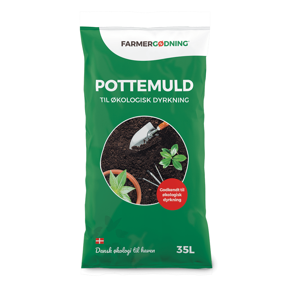Pottemuld til økologisk dyrkning fra Farmergødning i 35 liters pose. Perfekt til den økologiske have. Pottemuld til økologisk dyrkning er en færdigblandet pottemuld velegnet til den økologiske have. Mulden indeholder økologisk hønsegødning 2-1-2 fra godke