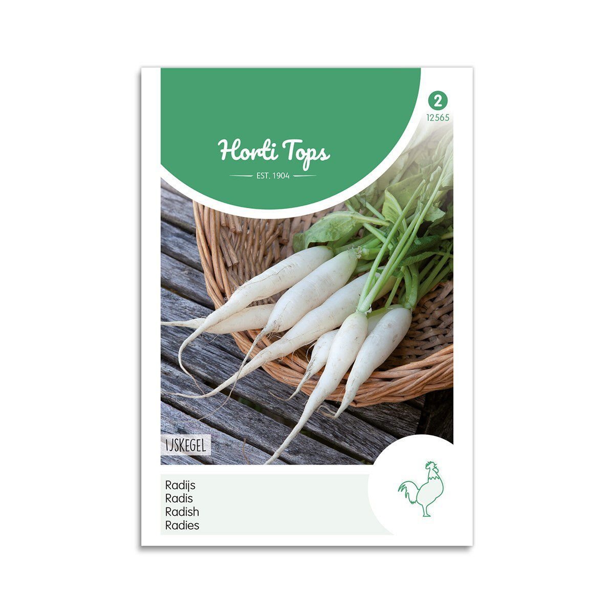 Radise frø sort Ijskegel eller hvid istap er en hvid aflang radise, der er hurtigt voksende og bliver ca. 10-15 cm i størrelsen. Sorten har en mild og sød smag, men er ikke ligeså stærkt i sin smag, som nogle af de andre sorter. Brug radiserne i salater,