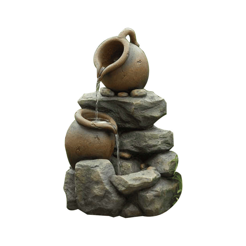 Spring Havespringvand Populært og flot designet mindre springvand med kander/krukker hvorfra vandet risler. Vandet cirkulerer automatisk fra den indbyggede pumpe i fontænen fra bunden og op igennem stenmassen, hvorfor den konstant risler ned fra den øver
