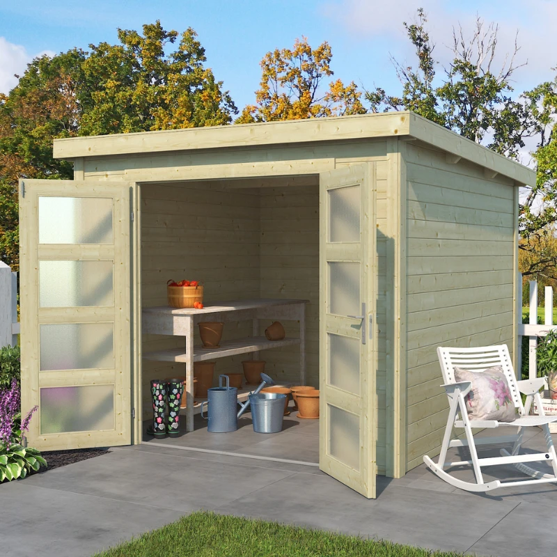 Et smukt havehus udført i fine materialer. Det kan bruges som opbevaringsrum til haveredskaber eller hvad man nu lige står og skal have opbevaret. Nogen vil endda bruge det som et lækkert wellness område eller et hjemmekontor i haven. Der er desuden god