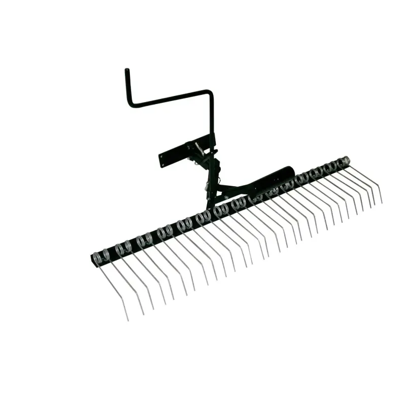 Texas Rive, 120 cm  Gårdrive til bagmontering på plænetraktor. Arbejdsbredden er 120 cm. Kræver tilpasning på traktor for at kunne monteres (kan ikke monteres på standard anhængertræk). Rive med 2×15 kraftige metal tænder. Riven kan løftes fra førersæ