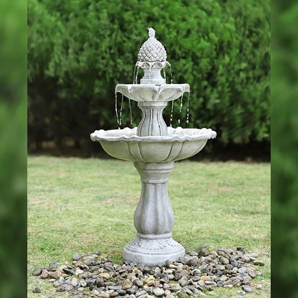 Tre trins fontæne springvand Smuk og klassisk vandkunst fontæne / springvand med vand i tre niveauer, hvor vandet risler langsomt ned fra den øverste kugle. Fadene fungerer som perfekte fuglebade og vil naturligt tiltrække fugleliv til din have. Levere