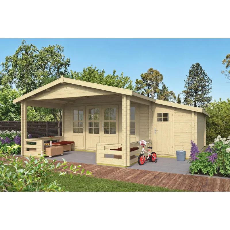 Trenton med side tilbygning Bjælkehytte – 58 mm – 407009N Vælg alle dine tilkøb du ønsker til produktet – Kig under Anbefalede produkter til dig på varen Afkryds det tilbehør du ønsker og læg det i kurven sammen med varen. Pris ekskl. Tagbeklædnin