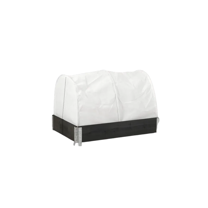 VÆKSTTUNNEL TIL PALLE HORTUS væksttunnel til palleramme Væksttunnel bruges b.la. til forspirring af planter samt forhindre insektangreb. Velegnet til opsætning på palleramme i køkkenhaven. Materiale: Fiberdug og stål buer. Ikke vævet 60 gr. tykkelse dug