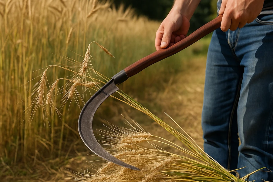 - Høst: skær aksene med le eller brug en lille mejetærsker.
