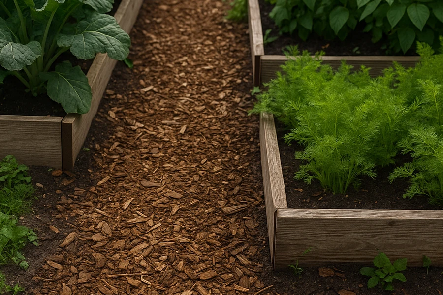- Efterfyldning: bark og flis skal lægges på igen hvert 1–2 år.