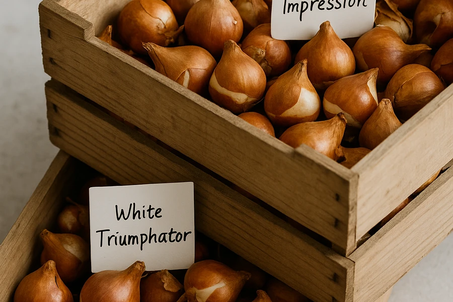 Efter optagning skal tulipanløg tørre luftigt, før de sorteres og lagres.